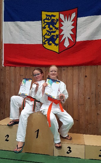 Bei den U12-Landesmeisterschaften hatte unser Verein mit seinen jüngsten Kämpfern wieder Grund zum Jubeln: Die schon im letzten Jahr mit Silber dekorierte Lotta Dressler schaffte es nach drei souverän gewonnenen Duellen erneut ins Finale (-35kg), musste sich dort mit Kampfrichterentscheid aber denkbar knapp geschlagen geben. Die Vizetitelverteidigung war für die zehnjährige Orange-Grüngurtträgerin aber ein großer Erfolg. Leni Schulze (-38kg) rundete die Medaillenausbeute mit einer bronzenen Plakette ab. Der TJK-Youngster Lucian Puhalovic (-24kg) sorgte bei seinen ersten offiziellen Meisterschaften für Furore, als er auf den Bezirksmeisterschaften Gold holte. In Neumünster musste er nun seiner Aufregung Tribut zollen, sammelt aber tolle Erfahrungen.